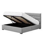 Modern ottoman bed with hydraulic lift storage system, perfect for compact UK homes.